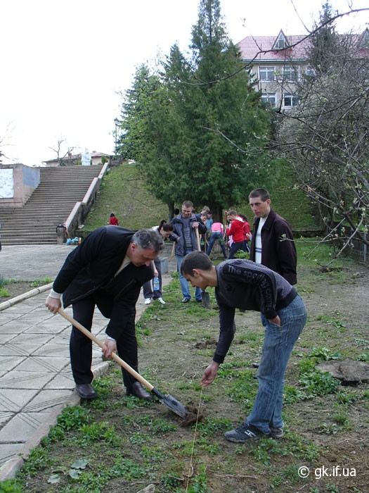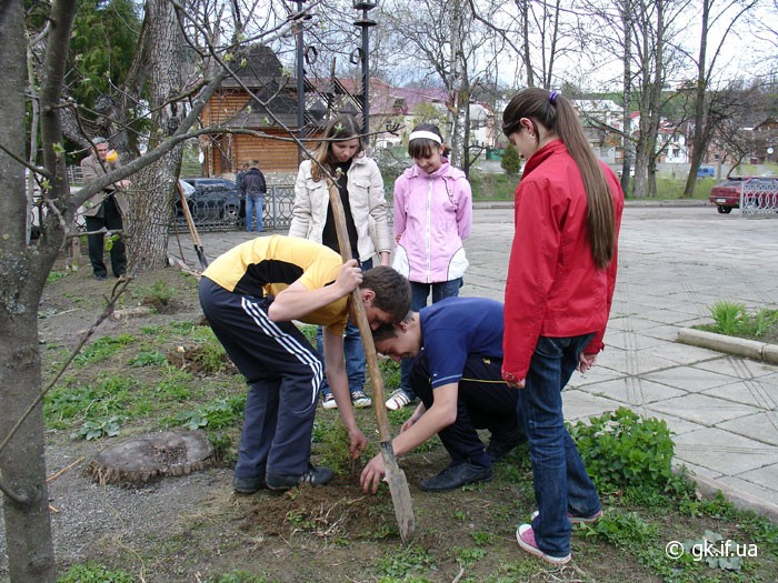 Весело і жваво приступили до роботи учні 9 класу Косівської ЗОШ №2. Більшість з них за свого юного життя встигли посадити по кілька дерев. Неподалік школярів, у затишному куточку Меморіалу слави, не розгинаючи спин, трудилися працівники районного Центру дитячої творчості. Вони впорядковували територію, на якій буде збудовано дитячий майданчик.