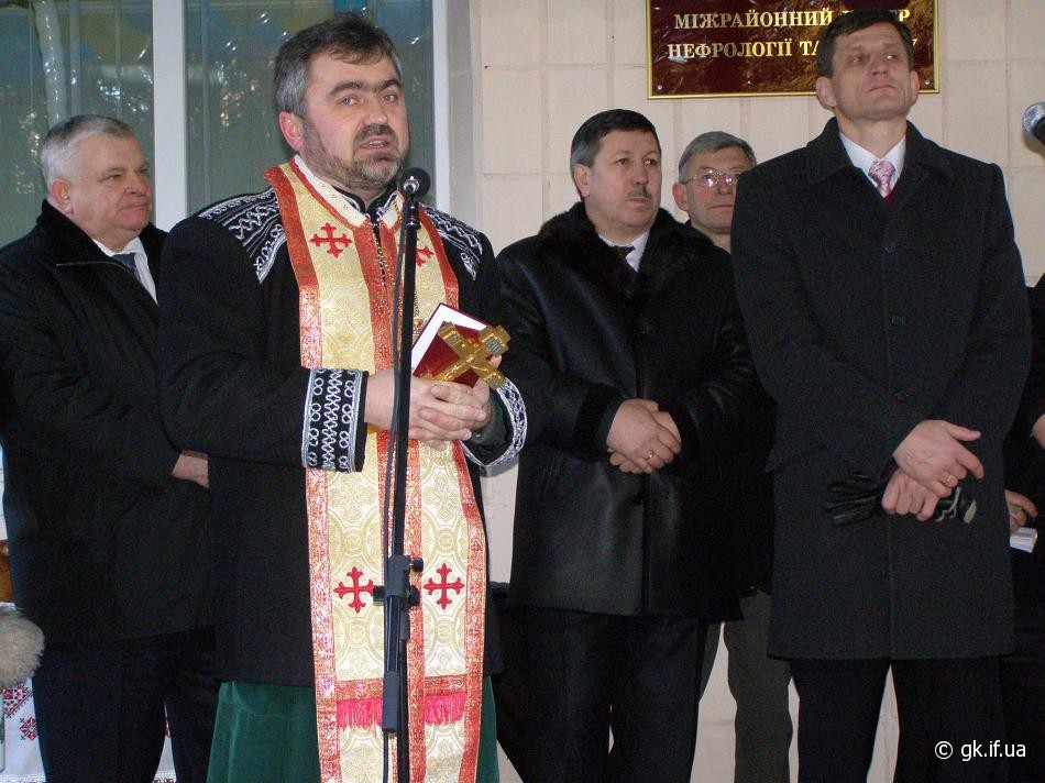 Благословив відкриття міжрайонного центру нефрології і діалізу, провів його освячення о. Іван Близнюк. А завершальним побажанням головного лікаря Івана Васильовича Фазана були такі слова: «Нехай ця благодатна йорданська вода впаде зціленням на болі дітей і дорослих».