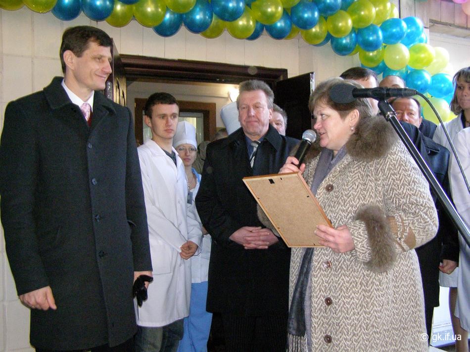 Відкриття міжрайонного центру нефрології та діалізу – це ще одна яскрава сторінка косівської медицини. Медики, як і годиться, зустріли шанованих гостей хлібом-сіллю, запросили очільників обласної і районної влади здійснити традиційний ритуал – перерізати символічну стрічку, а далі показали який вигляд мають діалізні зали і загалом Центр, презентація якого скликала усіх присутніх. «Заслуга в цьому всіх: обласної ради, облдержадміністрації, районної влади і всього колективу. Ми прийшли подякувати вам за відкриття такого відділу. В області це — 15-й об’єкт соціально-культурного призначення, який відкриваємо цього року», — зазначив, звертаючись до присутніх, голова облдержадміністрації М.Вишиванюк. А голова обласної ради О. Сич відмітив, що це гарний подарунок напередодні свята Богоявлення Господнього. Він побажав, щоб у центрі нефрології та діалізу добре лікували хворих, бо поправлятимуть тут своє здоров’я не лише жителі Косівщини, а й люди з інших районів. Депутати обласної ради Ярослав Шинкарук, Віталій Фейчук та Юрій Фальбійчук подарували для Центру новий холодильник. А керівництво відділу освіти райдержадміністрації та Черганівський сільський голова Марія Мицкан з нагоди новосілля вручили медпрацівникам ікони для Центру.