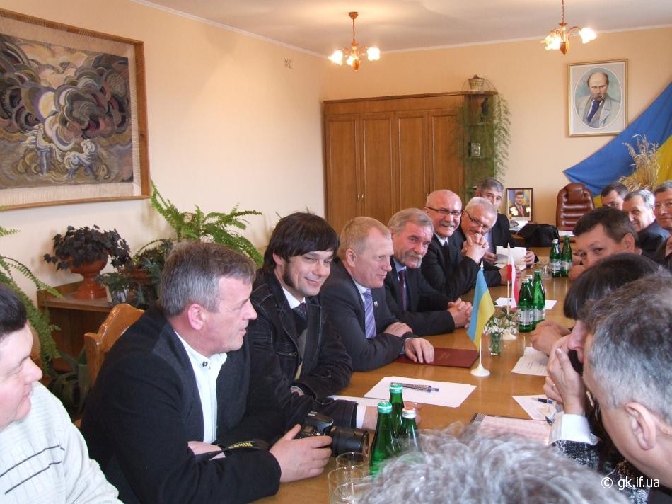 У кабінеті голови РДА їх зустрічала досить представницька група господарів: голова райдержадміністрації Ярослав Шинкарук, голова районної ради Андрій Клуб, перший заступник голови РДА Іван Грималюк, мер Косова Микола Фокшей, начальник РВ МНС Василь Горук, начальник відділу освіти Володимир Козьменчук, заступник начальника відділу культури Василь Струк, головний лікар Косівської ЦРЛ Іван Фазан, голова ради Центру громадських ініціатив Микола Близнюк і заступник директора Косівського інституту Марія Гринюк.