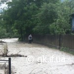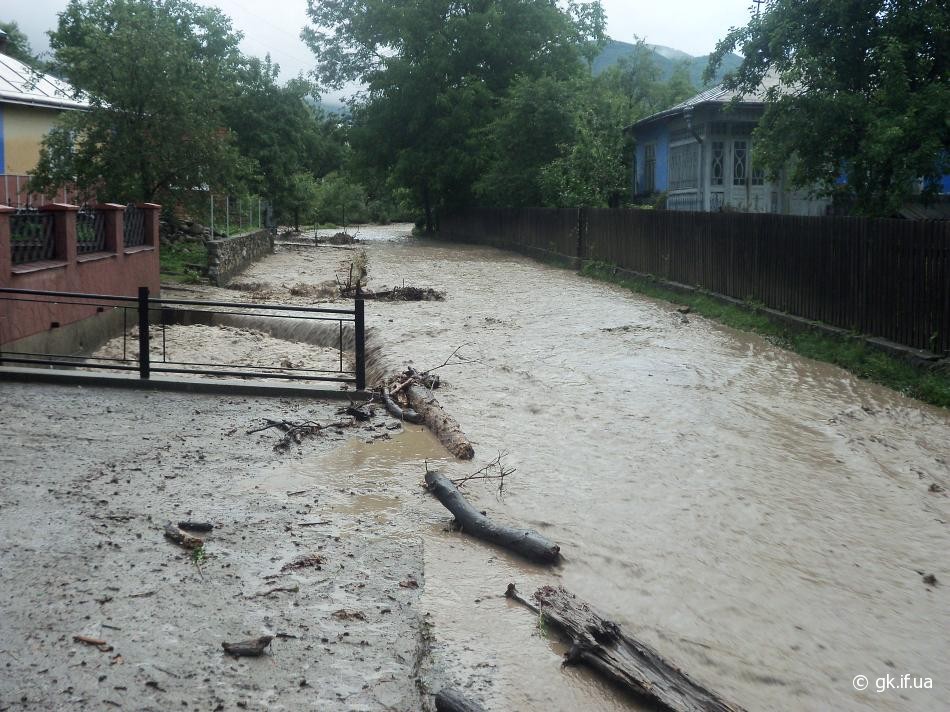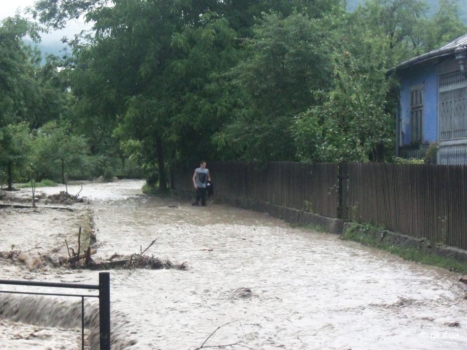 На цьому фото зображено одну з вулиць у селі Старих Кутах, уздовж якої досить маленький потічок за лічені хвилини перетворився на «бурхливу» річку.