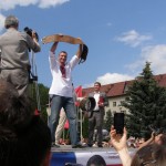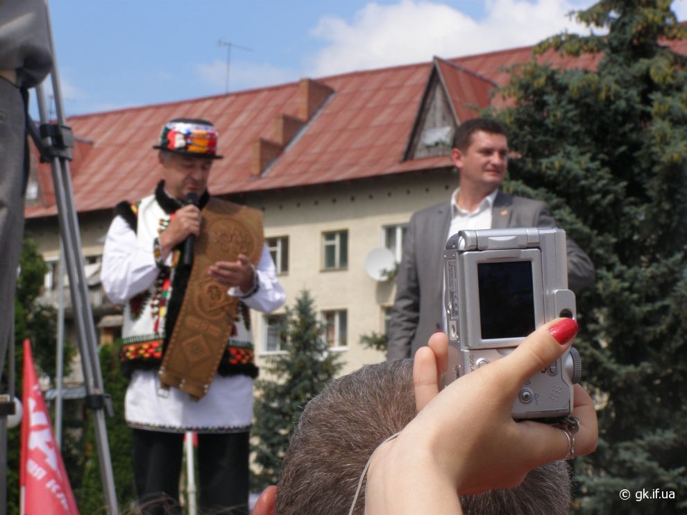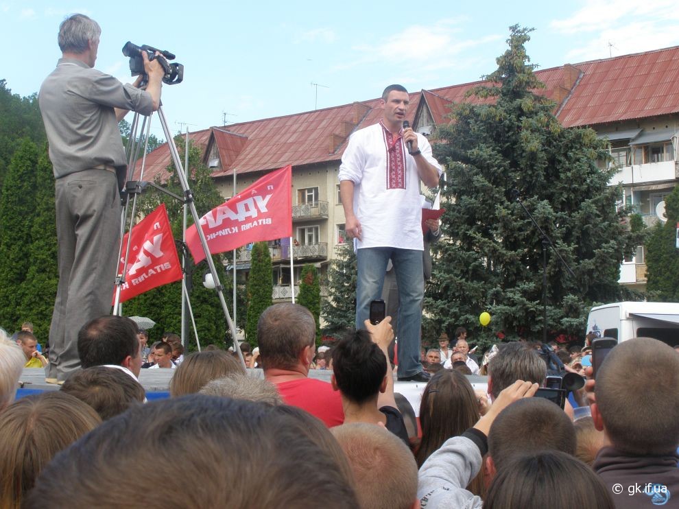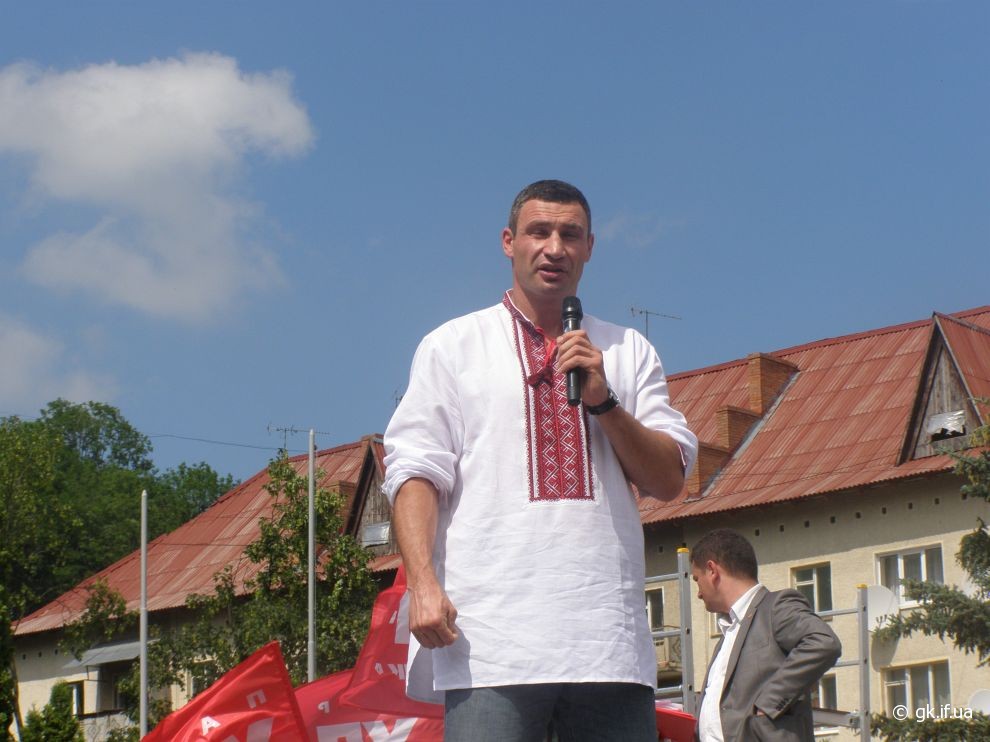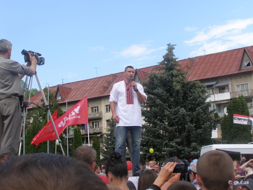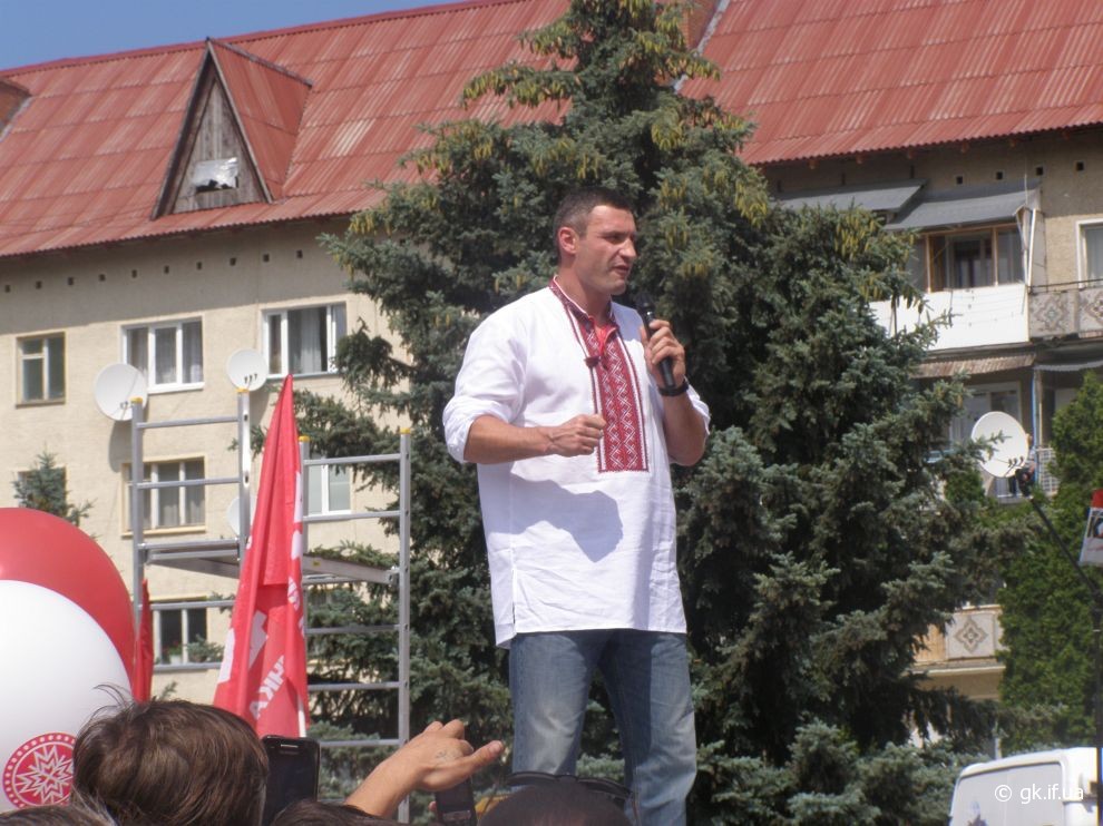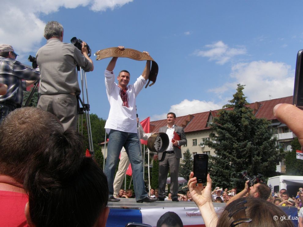 Чемпіон світу виступив на центральній площі міста. Цікавим акордом зустрічі було вручення В.Кличку гуцульського пояса з написом «В.К» (на фото).