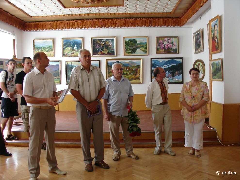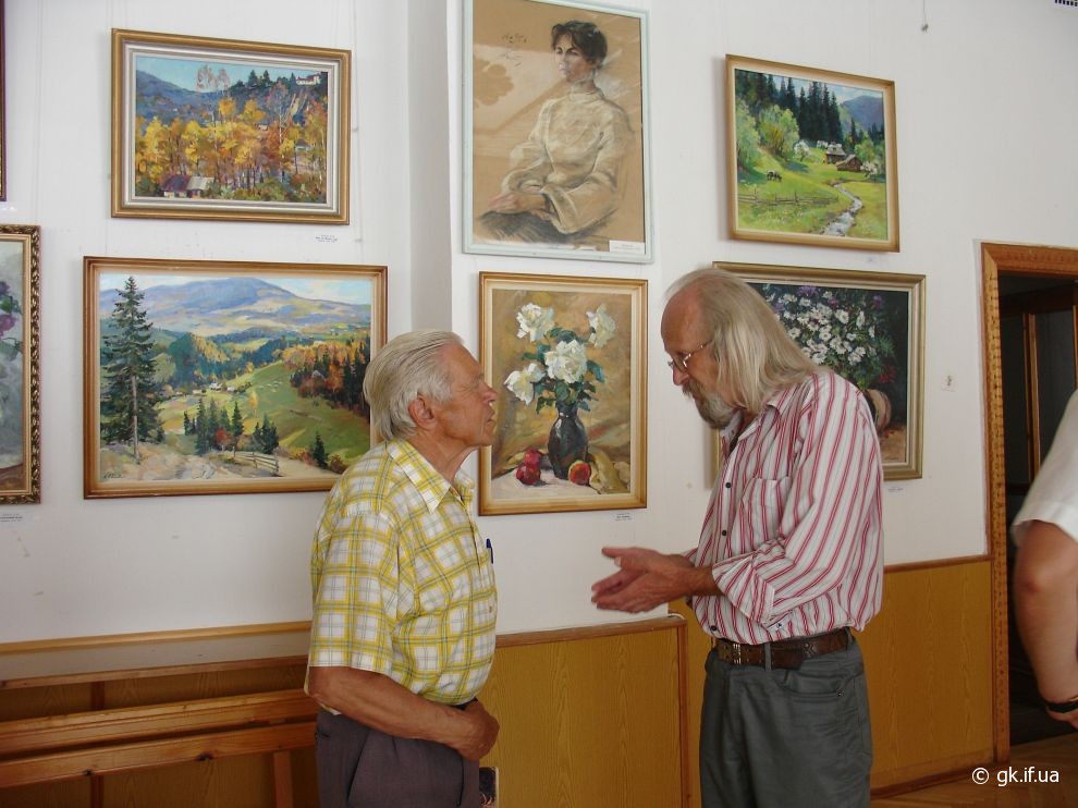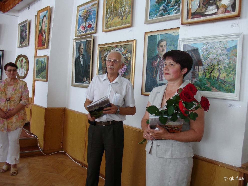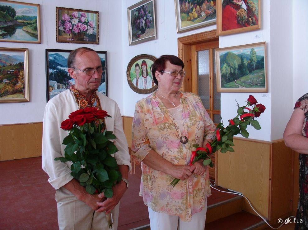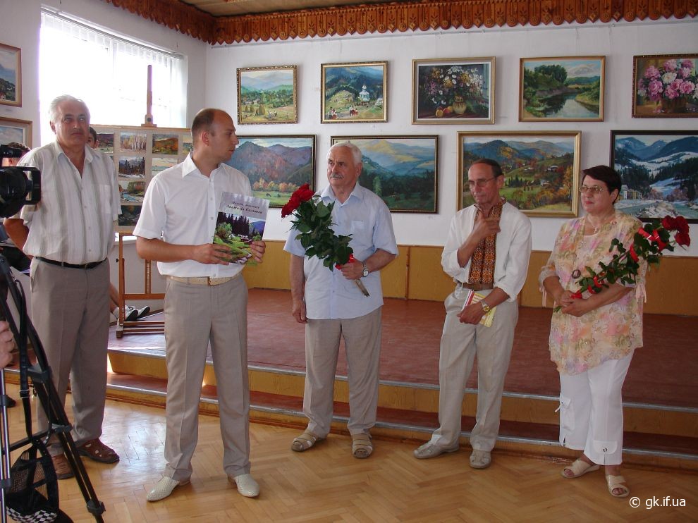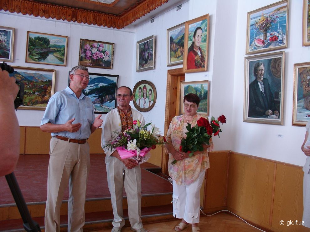 Коли я прийшла на персональну і ювілейну (з нагоди 70-річчя) виставку митця, яку було відкрито у виставковому залі Косівської регіональної організації Національної Спілки художників України, здалось, що потрапила у дивовижний райський сад. Запаморочливо пахли спокусниці півонії. Життєдайною свіжістю дихала чиста ріка. Зі дзвіниць церков линув святочний передзвін. А біля зимових пейзажів варто було ступити крок, щоб почути скрип снігу під ногами. Написані художником портрети не застигли для вічності, а продовжували жити, про щось думали і мріяли.