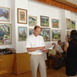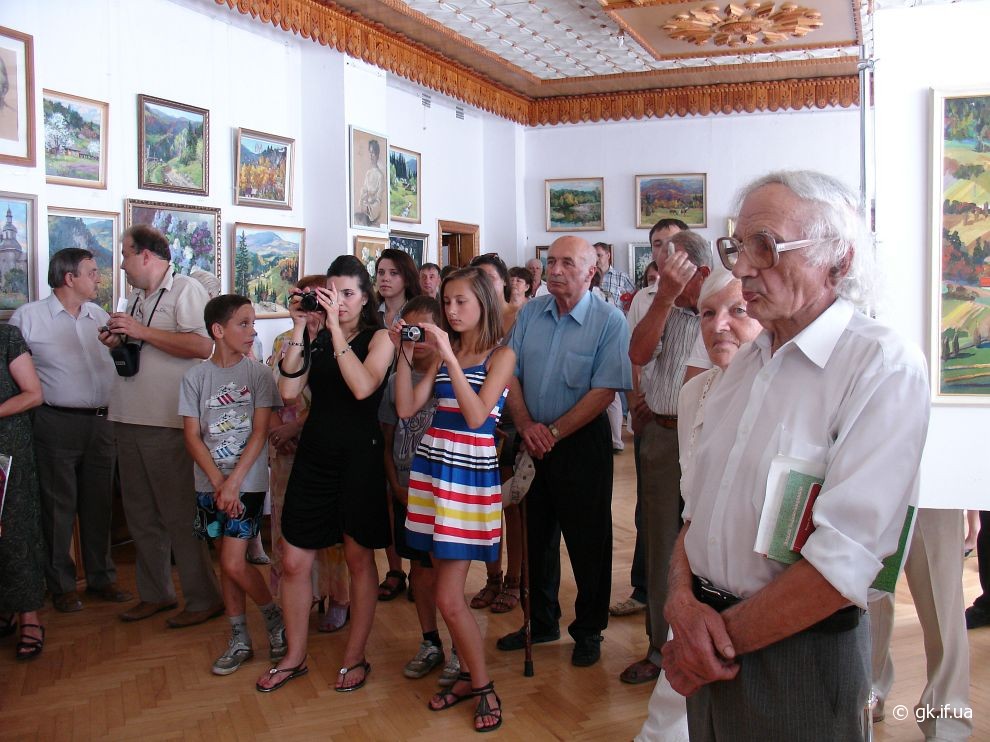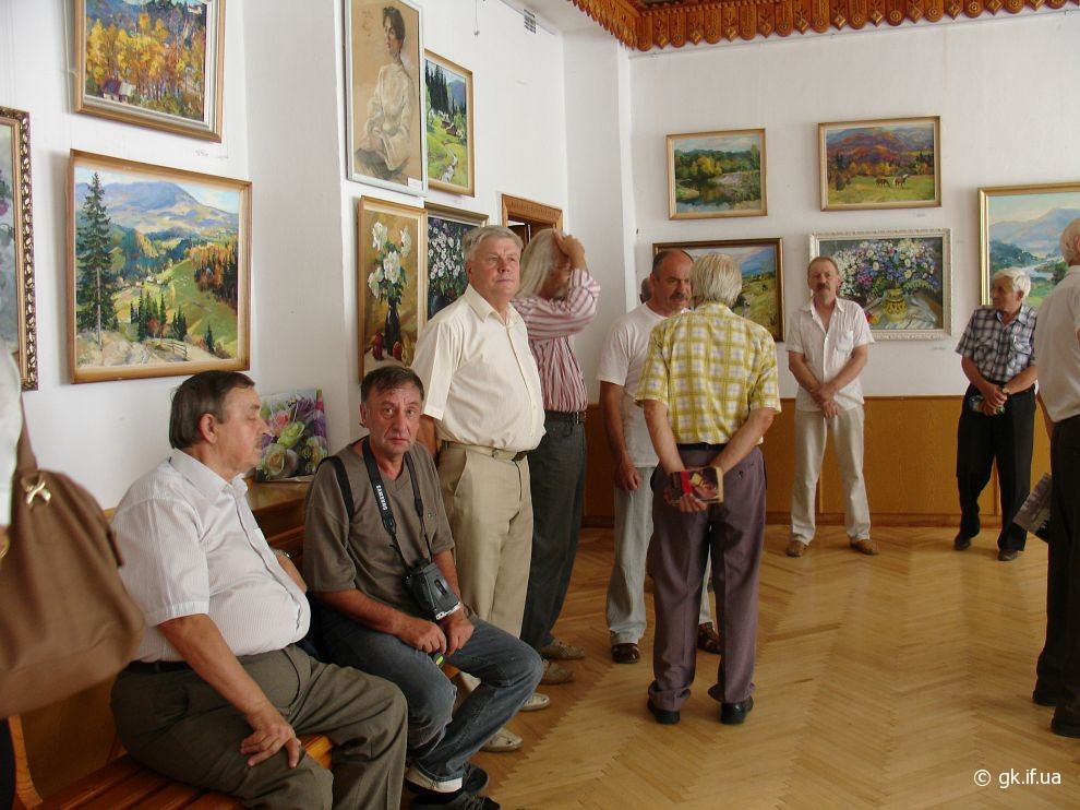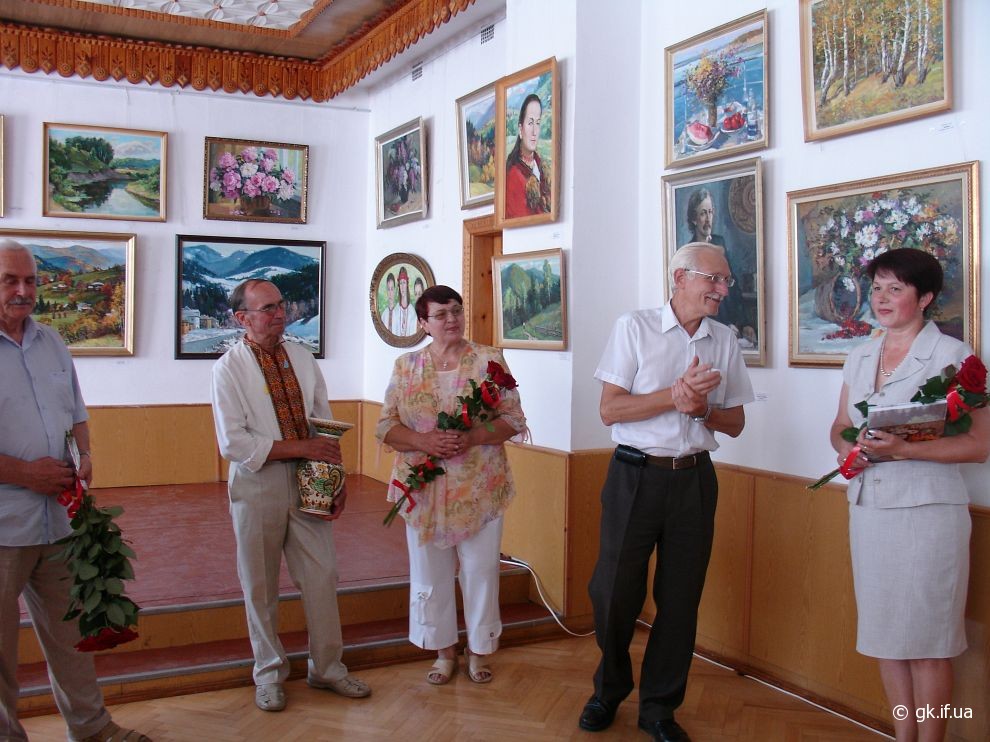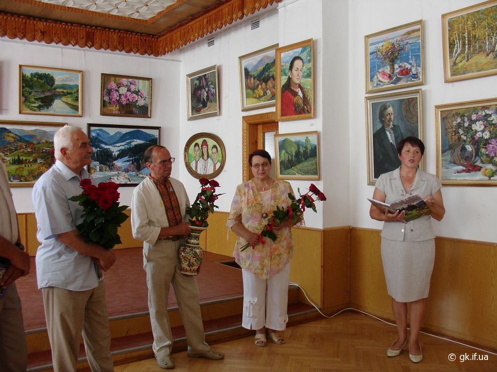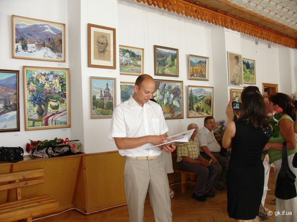 Коли я прийшла на персональну і ювілейну (з нагоди 70-річчя) виставку митця, яку було відкрито у виставковому залі Косівської регіональної організації Національної Спілки художників України, здалось, що потрапила у дивовижний райський сад. Запаморочливо пахли спокусниці півонії. Життєдайною свіжістю дихала чиста ріка. Зі дзвіниць церков линув святочний передзвін. А біля зимових пейзажів варто було ступити крок, щоб почути скрип снігу під ногами. Написані художником портрети не застигли для вічності, а продовжували жити, про щось думали і мріяли.