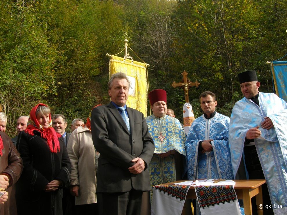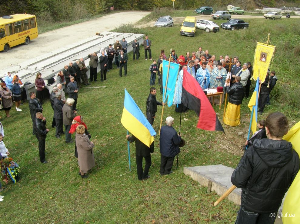 Того погожого святкового дня, на Покрову,  тут у селі Люча-Рушір, зібралося чимало людей з навколишніх сіл. Саме на місці легендарного бою сотенного Симчича (Кривоноса) на той час командира 3-ї  чоти, приїхали небайдужі українці з Березовів, Космача, Лючі, Яблунова, Стопчатова та Коломиї.