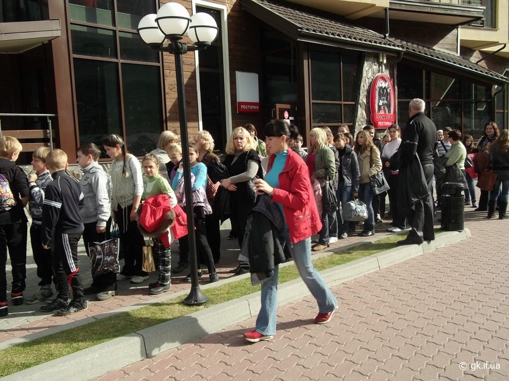 До курорту ми їхали комфортабельним великим автобусом. Дорогою милувалися осіннім пейзажем та були у захваті від чудових краєвидів Карпат. Як тільки ми приїхали до «Буковелю» всім просто перехопило дух. Територія комплексу дуже велика і він має вигляд мальовничого містечка. До курорту, окрім нас, приїхало ще дуже багато дітей та вчителів з інших шкіл. У кожної групи відвідувачів був свій особистий екскурсовод, який розповідав про «Буковель» та водив усіма його куточками.