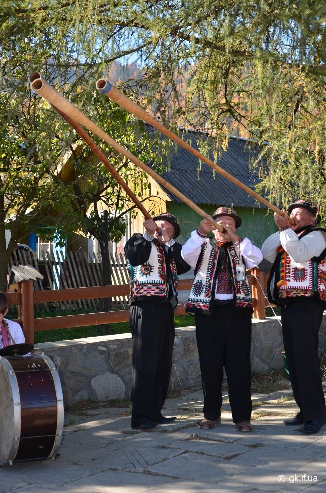 Урочисте запалення газового факела, за давнім гуцульським звичаєм, розпочали трембітарі.